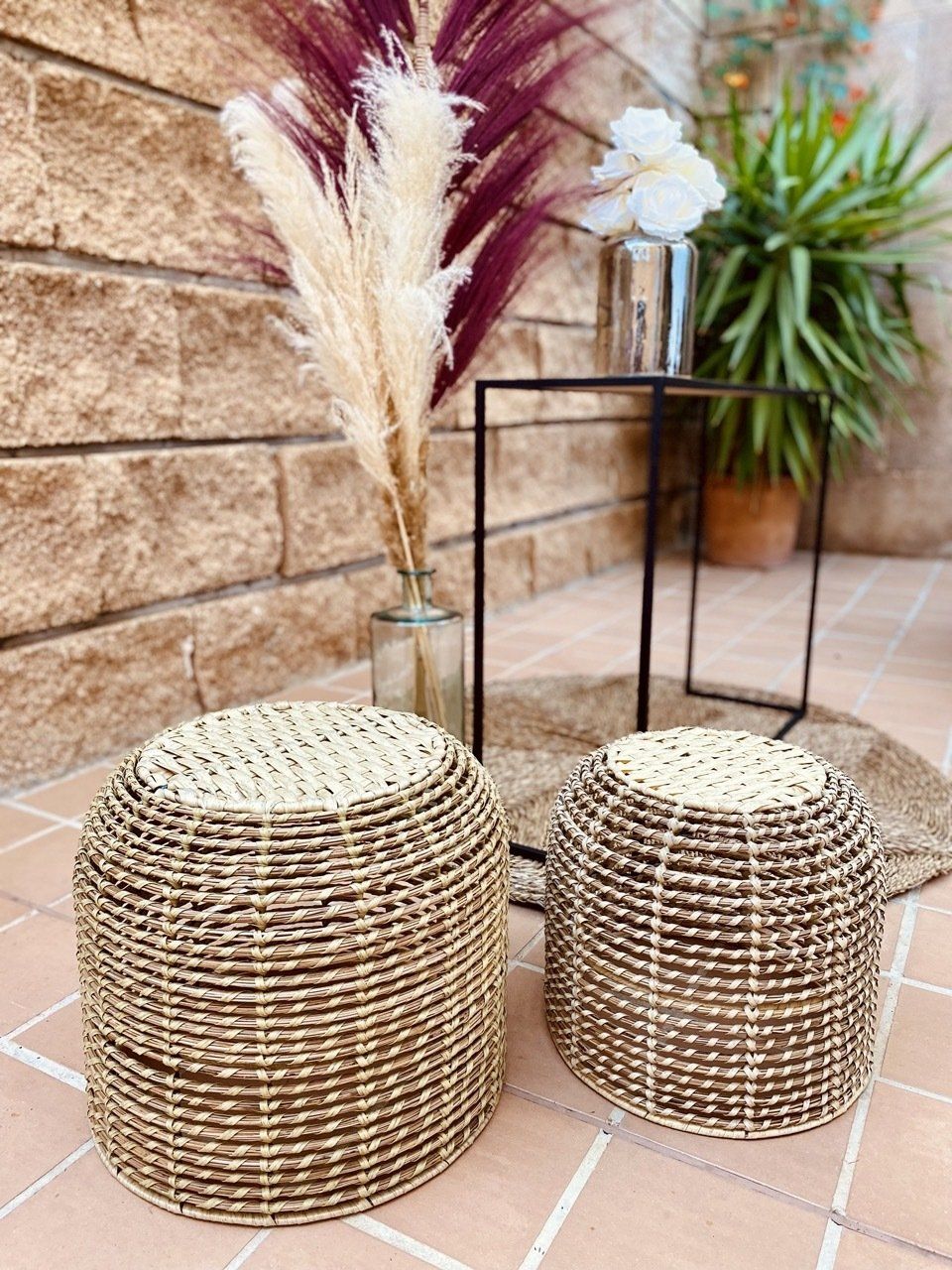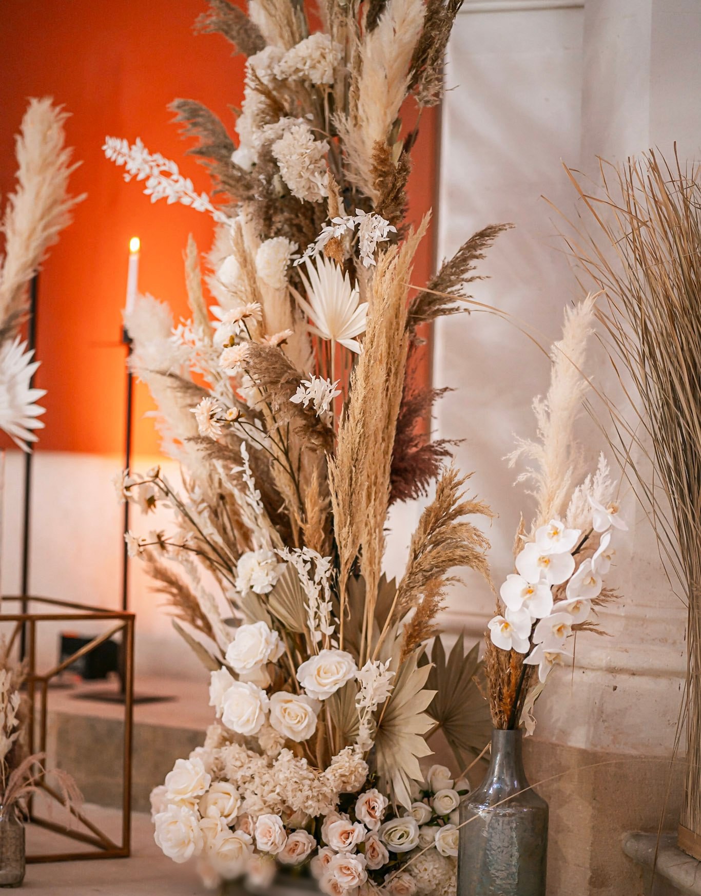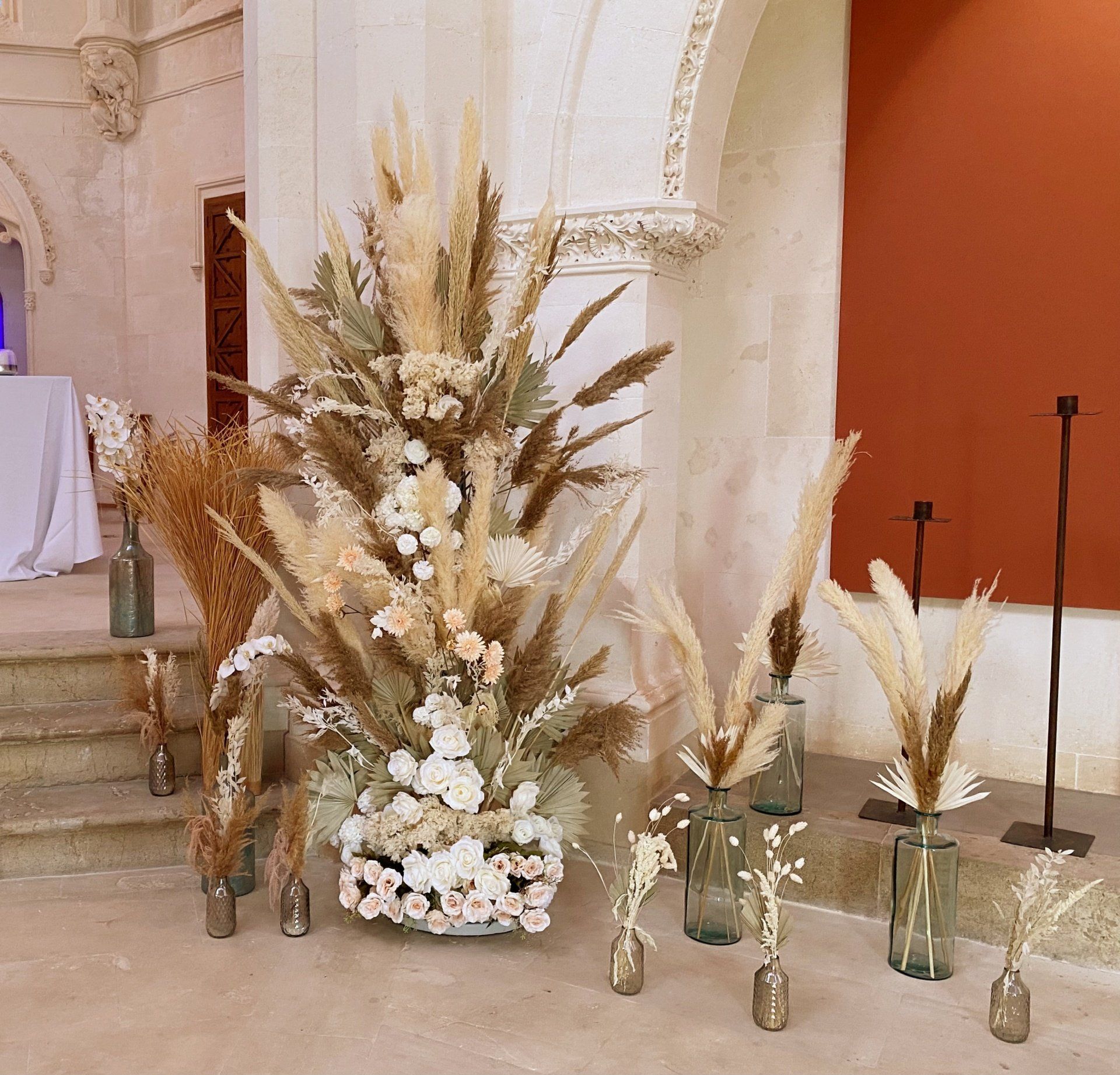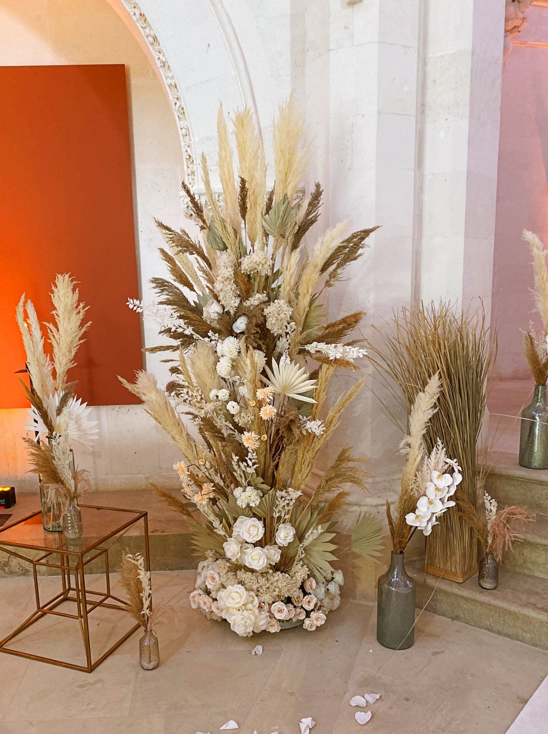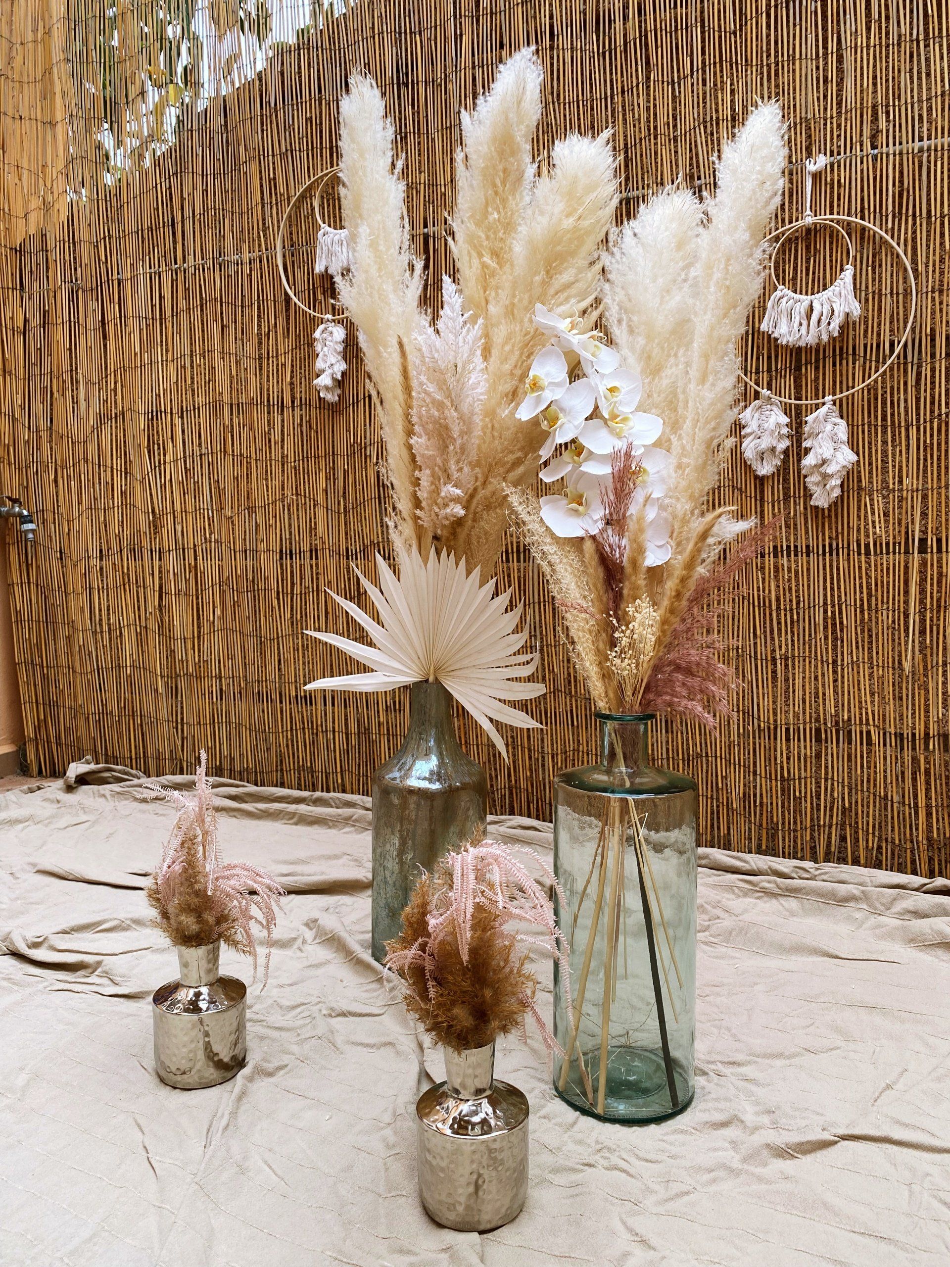 - 4 jarrones altos con hierba de pampa - altura de aproximadamente 1,20 metros - al lado del arco