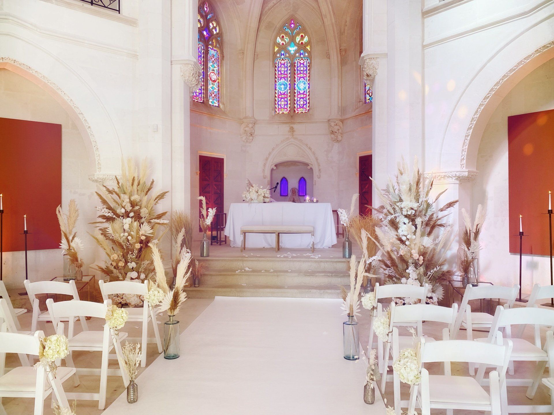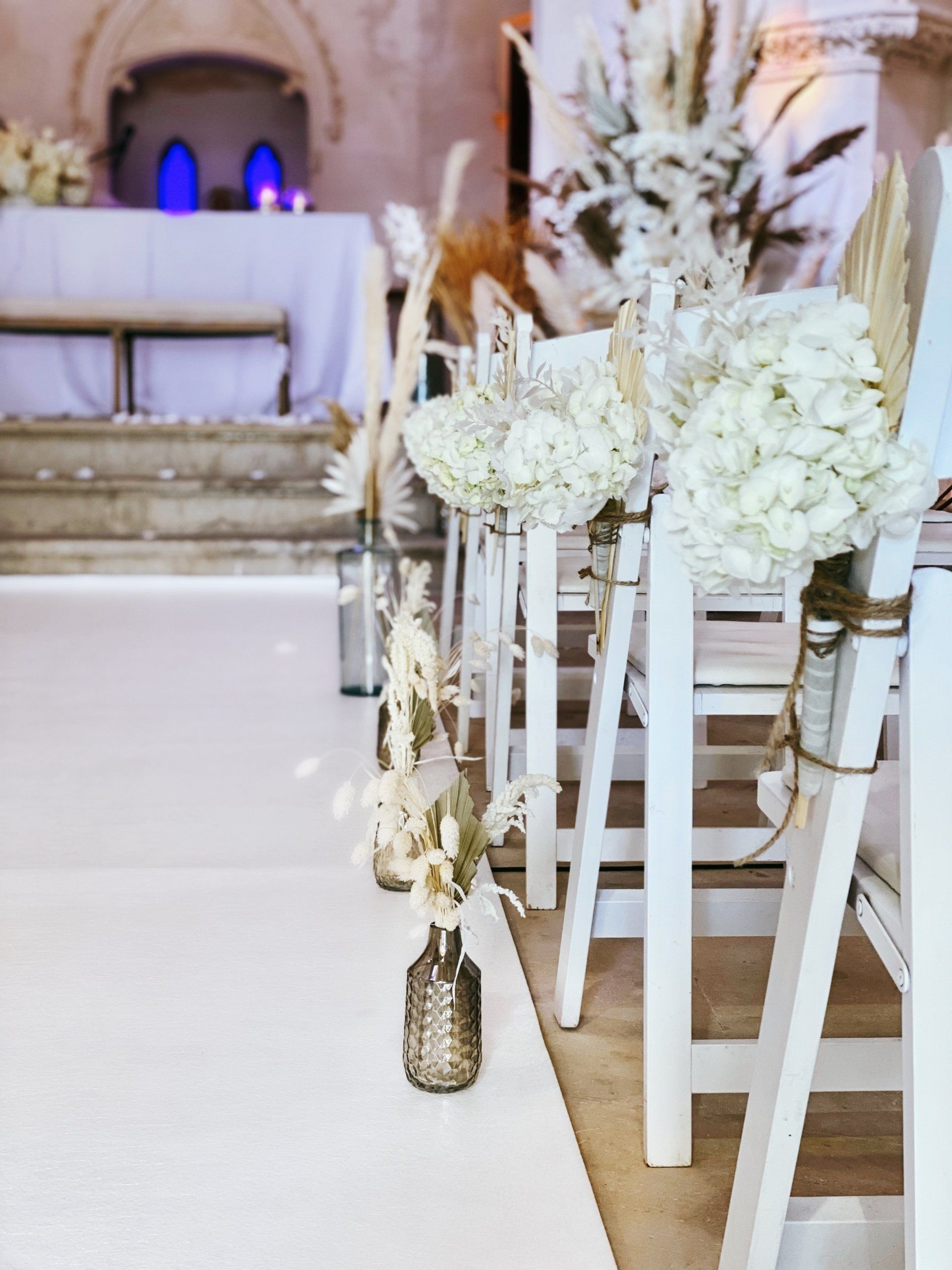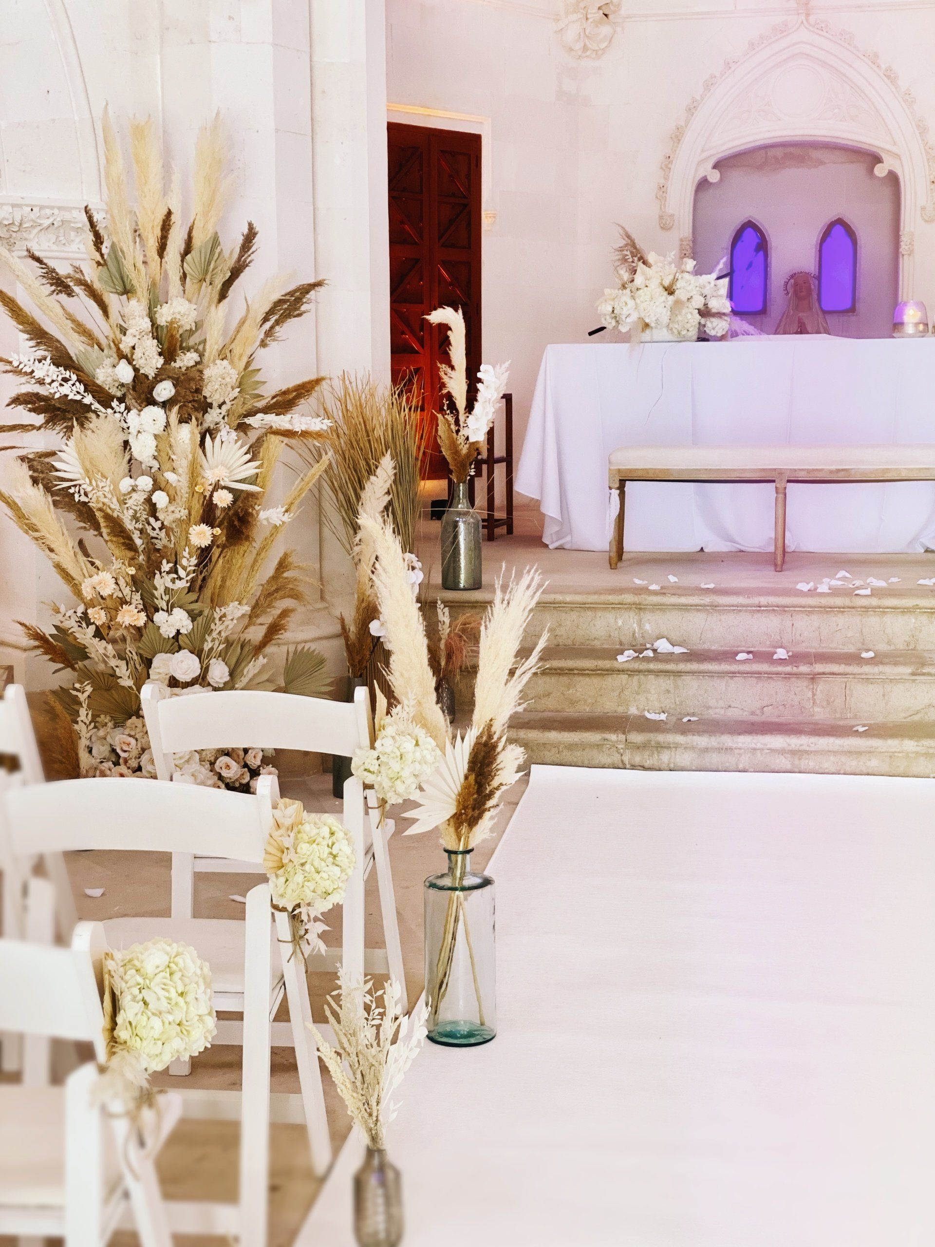 Alquila un arco de ceremonia con decoración de estilo boho o vintage, ideal para tu boda en Mallorca. Ofrecemos decoraciones florales únicas y hierba de pampa, esenciales para un ambiente boho, bohemio, étnico y hippie.